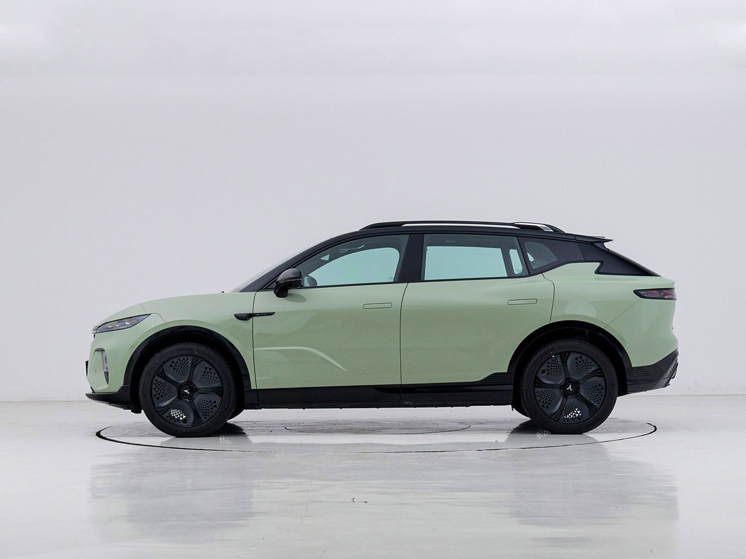 側面的感覺和車頭一樣,像隱藏式門把手、低風阻輪圈均有配備,但并不單調,可以看到車頂和行李架采用了黑色的設計,下方的車門下沿、輪拱和輪圈也都是黑色的配色,所以側面層次感同樣不俗。當然側面最大的看點肯定就是后擋風玻璃了,它的傾斜角度很大,營造出了小溜背的感覺,這一設計應該很受年輕人的歡迎。